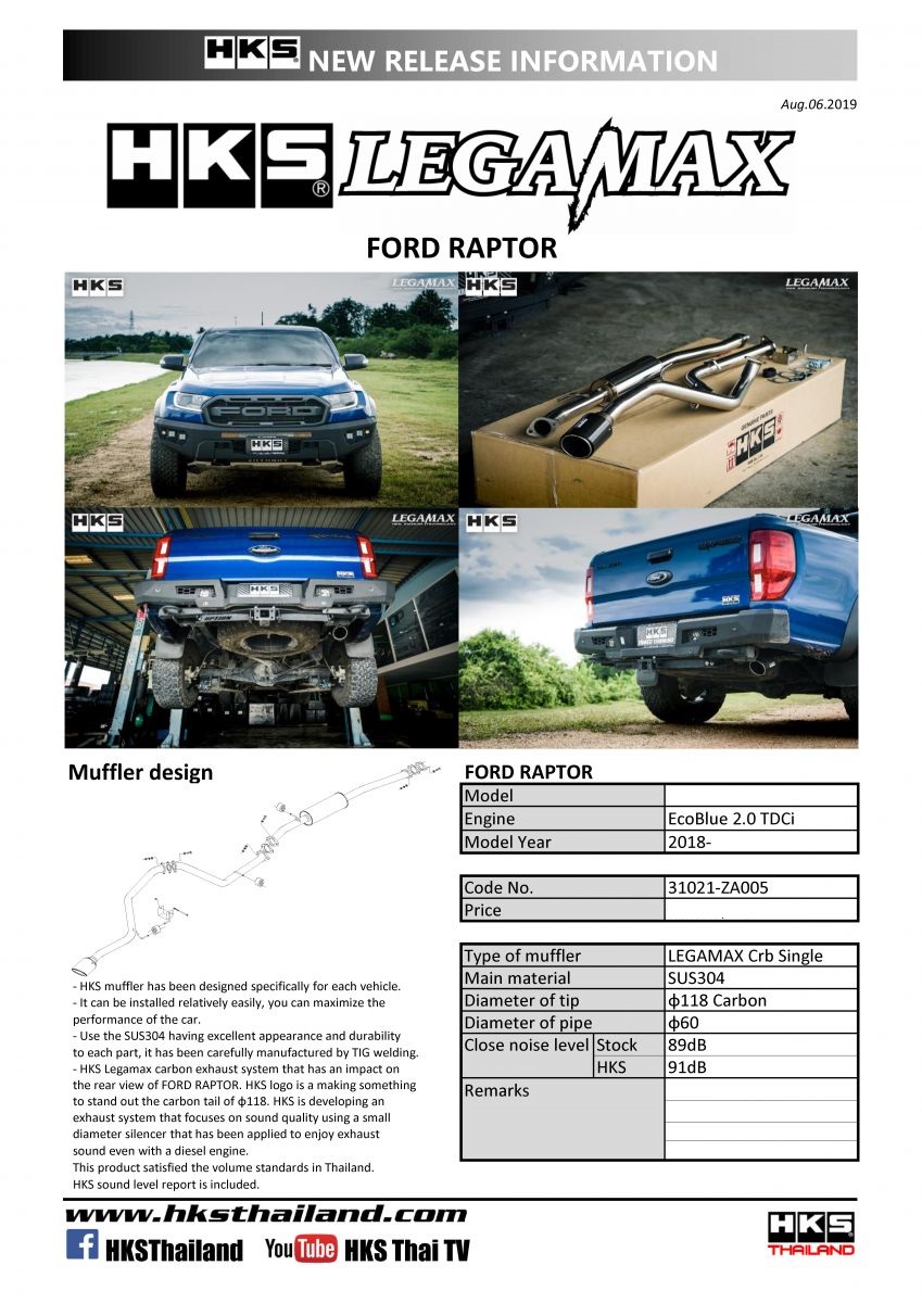 HKS LEGAMAX CRB FORD RAPTOR CARBON SINGLE