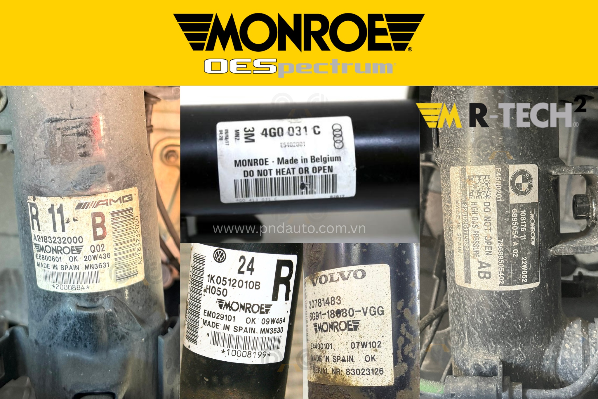 MONROE là một công ty sản xuất phuộc giảm xóc và hệ thống treo chuyên nghiệp có lịch sử lâu đời được thành lập năm 1916 tại Michigan – USA. Monroe hiện là một trong những nhà sản xuất phuộc giảm xóc lớn nhất trên thế giới, 40% trong số đó cung cấp hệ thống giảm xóc OEM cho các hãng xe danh tiếng và 60% cung cấp thị trường dịch vụ hậu mãi để bảo dưỡng xe, bao gồm GM, FORD, Volkswagen, BMW, AUDI, Renault, Volvo, Mazda….Có rất nhiều mẫu xe trong nhà máy sản xuất ô tô đã chỉ định MONROE là nhà cung cấp OEM cho bộ giảm xóc theo xe từ các Nhà máy trực thuộc MONROE ở khắp năm châu lục trên thế giới. Ở vị trí dẫn đầu trong ngành, công nghệ giảm xóc MONROE hàng đầu thế giới, đồng thời cũng được cho là một trong những loại giảm xóc bền tốt nhất thế giới, độ ổn định và khả năng xử lý lái được cải thiện rất nhiều, mức độ êm ái và thoải mái tuyệt vời.